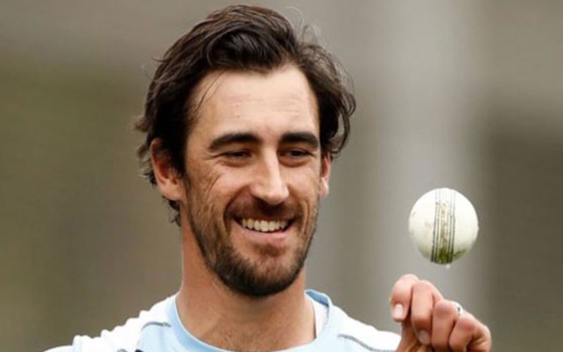 Mitchell Starc was seen using a ball that was half red and half white to assist batters in practicing for lateral movement.