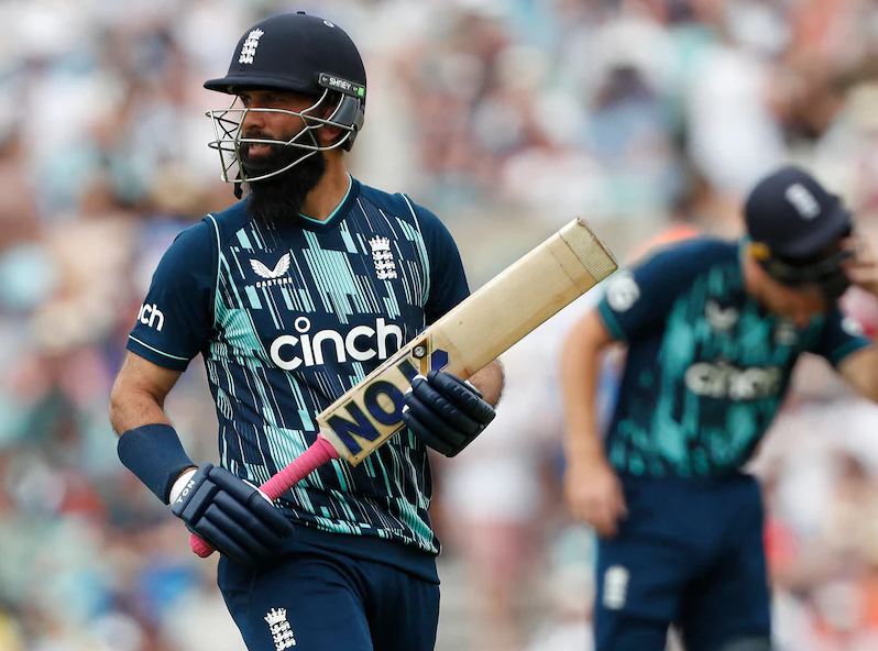 The highlight of Ali’s innings undoubtedly came in the 37th over, against a struggling Prasidh Krishna. The young fast bowler failed to bowl at consistent lines and lengths and the batsmen were more than ready to take advantage of it. With the score at 169/6, Krishna slid one ball from around the wicket toward’s Moeen Ali legs, who swiped at the ball in one huge heave. He managed to timed the ball well, as the ball traveled a long way.