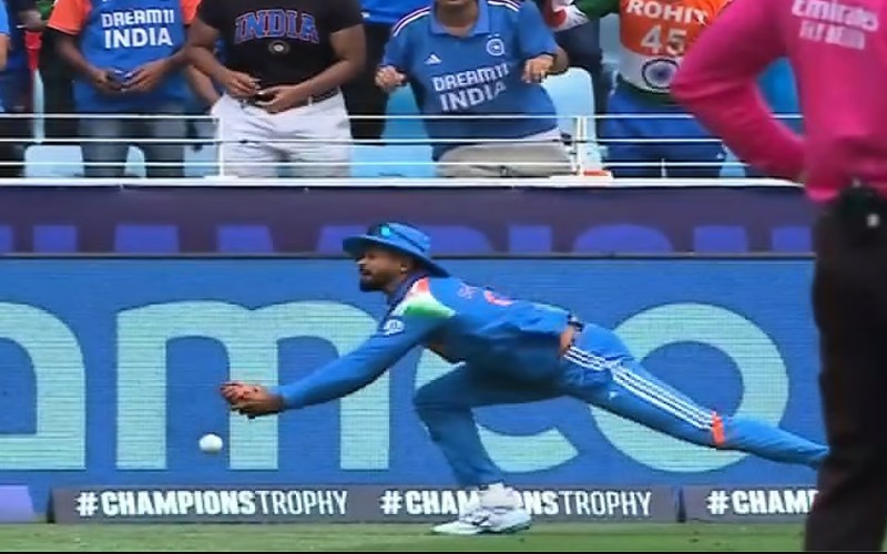 Another opportunity came on the very next over. Off the first ball of the 8th over, Shreyas Iyer sprinted 21 meters from deep midwicket, diving full-stretch to his right. He got his hands to the ball but couldn’t secure it, as it popped out just before he hit the ground. Despite his sharp reflexes, the high-speed effort ended in disappointment.