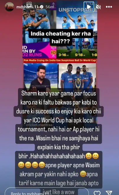 Shami further questioned Raza’s credibility, stating, “Come on, it’s the ICC World Cup, not your local tournament, and you’re a player, right? Wasim bhai has explained and clarified this before. Hahahahahaha.” “You don’t even have confidence in your own player Wasim Akram. You’re busy praising yourself, my dear. Just like a wow,” he added.