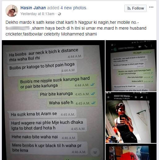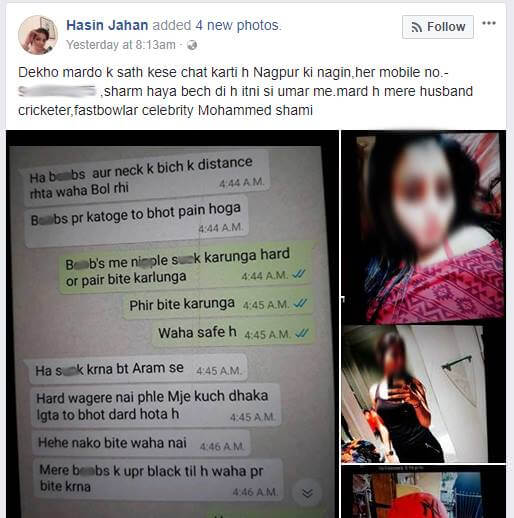 India’s promising fast-bowler Mohammed Shami’s wife has reportedly claimed that the sportsman is having an illicit affair. In a bid to expose the Shami’s extra-marital affair, she posted several screenshots of Messenger and Whatsapp messages on her Facebook wall.