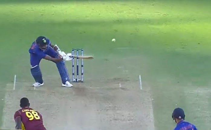 Mohammed Siraj was seen smashing a boundary on the penultimate ball of the last over of the innings against Jason Holder. Holder bowled low full-toss to Siraj on the fifth delivery and he scooped his shot over short fine leg.