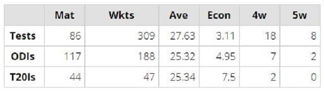 In the recently concluded series against Australia. Morkel became the fifth South African bowler to enter the 300-wicket club along with Shaun Pollock, Makhaya Ntini, Allan Donald and current teammate Steyn. In the same Test match where he achieved this feat, he ended up taking nine wickets and was adjudged as the Man of the Match. Sadly the Test would be remembered for the infamous ball-tampering fiasco instigated by Steve Smith, David Warner, and Cameron Bancroft. He ends his Test career as South Africa’s fifth highest wicket-taker.