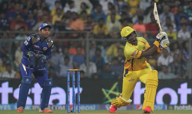 During the 12th match of IPL 2015 between Mumbai Indians and Chennai Super Kings at Mumbai, chasing a handsome target of 184, CSK replied back in style by scoring 90-0 in the first six overs. In a bid to provide a strong start to their team, Dwayne Smith and Brendon McCullum took on the opposition bowlers right from the start. At the end of the powerplay, CSK had scored 90-0, out of which Smith had contributed 50* and McCullum had scored 36*. For MI, Lasith Malinga had bowled two overs in the powerplay only to be hit for 33 runs in them.