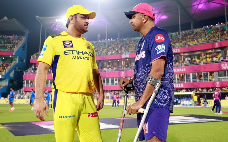 Despite the disappointment of CSK’s loss, Dhoni made it a point to walk up to Dravid, RR’s head coach, who is recovering from a leg injury sustained during a local match in Bengaluru before the IPL season. Dravid, who had recently been using a wheelchair, was on crutches, and Dhoni’s gesture of checking in on him added a touch of warmth to the evening. The two legends, who shared the Indian dressing room for years, exchanged smiles and a brief conversation.