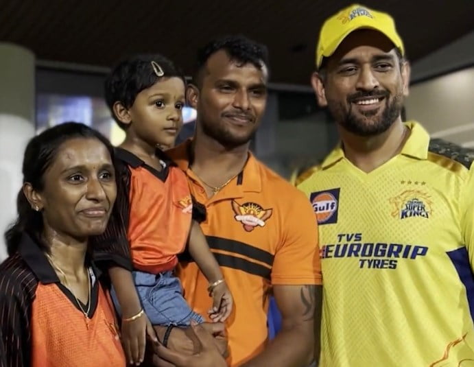 MS Dhoni with T Natarajan’s family