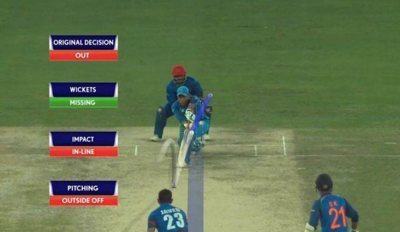 Dhoni was leading the Indian squad for the 200th time and he was adjudged LBW for 8 on a delivery Javed Ahmadi. He stepped out of the crease with long strides, which gave the impression that the ball might have spun down leg. But the umpires raised his fingers. With India left without a review, Dhoni had to walk back. The replays confirmed that it was indeed missing leg stumps by quite some distance.