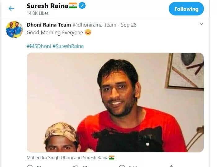 However, Suresh Raina’s latest Twitter activity must be a huge sigh of relief for the fans. A fan page named ‘Dhoni Raina Team’, posted a throwback picture of Dhoni along with Raina together. The latter has liked the picture hinting at not damage to their relationship.