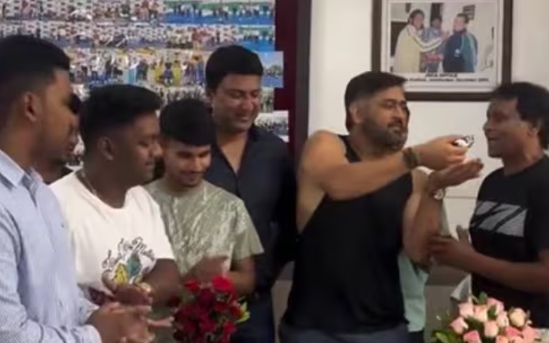 MS Dhoni turned 44 on July 7, and as always, his birthday wasn’t just another date—it became a nationwide celebration. The former India captain, known for his calm demeanor and unmatched legacy, chose to keep things simple in his hometown Ranchi. A video that quickly went viral captured the essence of the man: dressed casually in a sleeveless T-shirt, Dhoni cut a modest birthday cake, surrounded by close friends, offering them slices with his trademark smile. It was an intimate moment, yet one that lit up social media across the cricketing world.