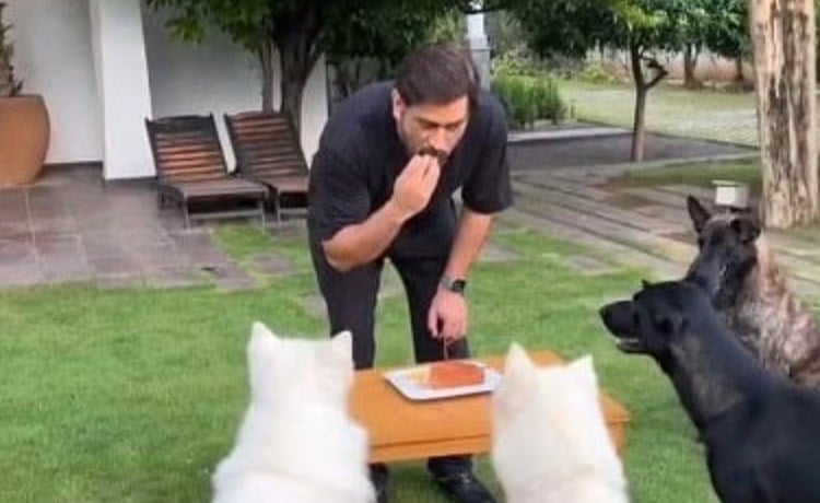 In the touching video, MS Dhoni can be seen cutting a birthday cake in the presence of his pet dogs. The cricketer then tossed a few slices toward his furry companions, who eagerly caught every piece. Dhoni also tasted the cake himself while feeding his beloved pets, displaying his affectionate bond with them.