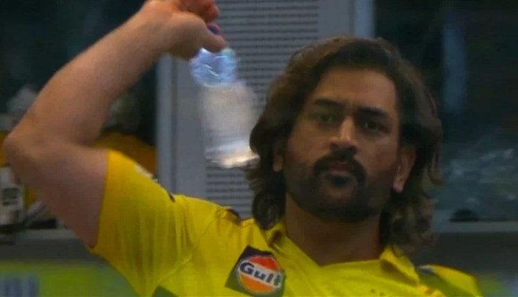 In the 17th over, as MS Dhoni awaited his turn to bat, the camera panned to him in the dressing room, projecting his image on the giant screen. Fans erupted into cheers upon seeing Dhoni, prompting his playful reaction. Seizing a water bottle, Dhoni pretended to hurl it towards the camera, eliciting laughter from the crowd.