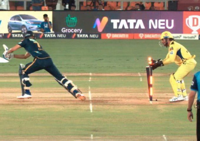 In the final of the Indian Premier League 2023 (IPL 2023) at the Narendra Modi Stadium in Ahmedabad, Chennai Super Kings Captain MS Dhoni showcased his exceptional skills by dismissing Gujarat Titans opener Shubman Gill with a lightning-fast stumping, after two dropped catches by Deepak Chahar.