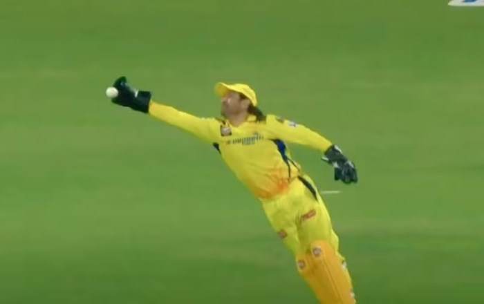 42 years old Dhoni dropped an easy catch of Russel