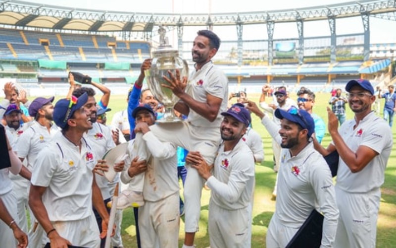 Ajinkya Rahane (c), Prithvi Shaw, Ayush Mhatre, Shreyas Iyer, Angkrish Raghuvanshi, Siddhesh Lad, Suryansh Shedge, Hardik Tamore (wk), Sidhaant Addhatrao (wk), Shams Mulani, Tanush Kotian, Himanshu Singh, Shardul Thakur, Mohit Avasthi, Mohd. Juned Khan, Royston Dias.