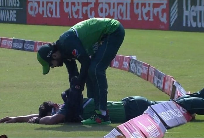 Naseem Shah attempted a slide to prevent the ball from reaching the boundary but was unsuccessful and didn’t move after the attempt. Physiotherapists rushed to attend to him, and Mohammad Rizwan also signaled for medical assistance.