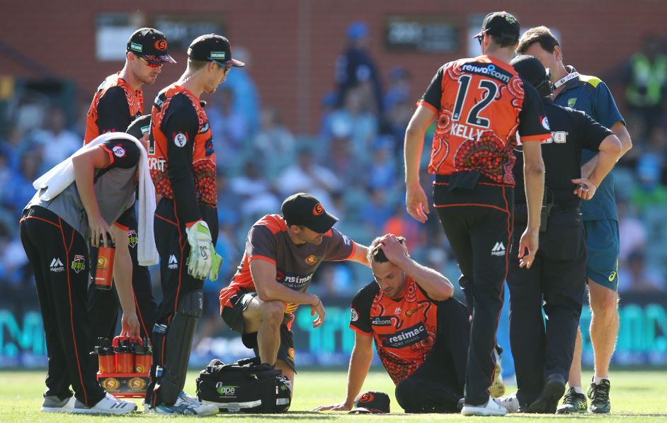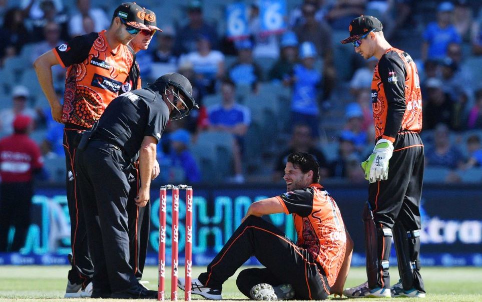 After having a discussion with Perth skipper Mitchell Marsh, Coulter-Nile delivered the sixth ball – which Nielsen hit for six over mid-wicket to help the Strikers break the back of a tricky run chase which led to a five-wicket win. The pacer then noticeably staggered before sinking to his hindquarters and sitting on the ground.