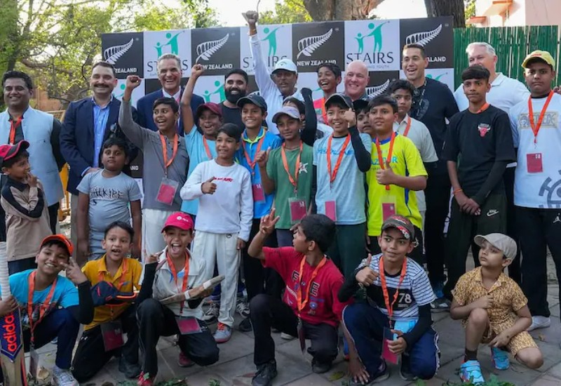 New Zealand Prime Minister Christopher Luxon embraced India’s cricketing spirit during his visit to New Delhi, showcasing his batting skills in a lively gully cricket match. Accompanied by Indian legend Kapil Dev, Luxon joined local children in a friendly game on the streets, creating a memorable spectacle for onlookers. The event also featured former New Zealand batter Ross Taylor and left-arm spinner Ajaz Patel, making it a star-studded affair for young cricket enthusiasts.