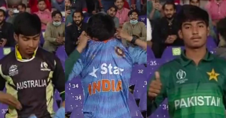 In the middle of all the drama during yesterday’s game, a fan was seen donning different jerseys, one over the other. The fan started with England jersey, and went to show off his Australia, New Zealand, West Indies, South Africa, India jerseys and finally finished with a Pakistan jersey. Even the commentators were surprised by the surprising move from the fan and they saw the funnier side of it while he was picked to be the ‘fan of the match’.