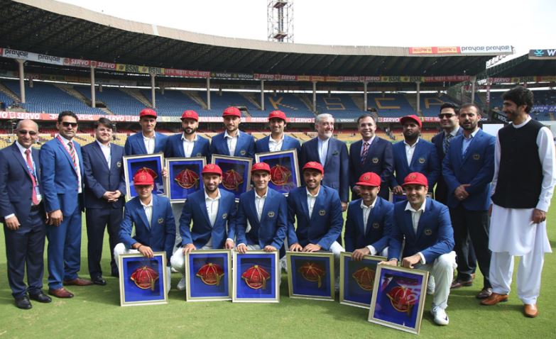 Before the start of the game at the M. Chinnaswamy stadium, a presentation ceremony took place which was attended by the host of dignitaries, the Afghan players received their red Test caps.