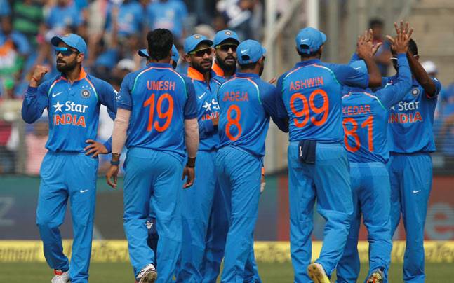 Virat Kohli (c), Rohit Sharma (vc), Shikhar Dhawan, Manish Pandey, MS Dhoni, Kedar Jadhav, Hardik Pandya, Bhuvneshwar Kumar, Mohd. Shami, Yuzvendra Chahal, and Jasprit Bumrah.