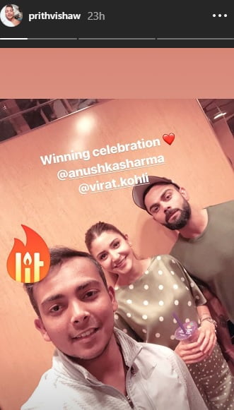Kohli would be delighted that he is in the best space to celebrate the anniversary having won the close Test match the other day just by 31 runs. Though what has surprised many is the presence of Shaw with the Indian skipper and Bollywood diva.