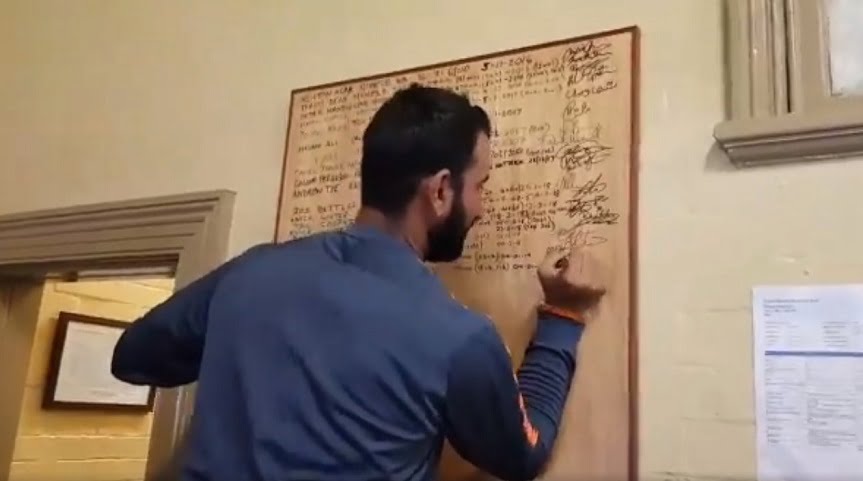 Pujara and Pant, who helped India post a mammoth total of 622/7 before the Indian skipper Virat Kohli’s decision to declare the first innings were asked to sign in from of their names on the board after the play was abandoned due to rain on Saturday.