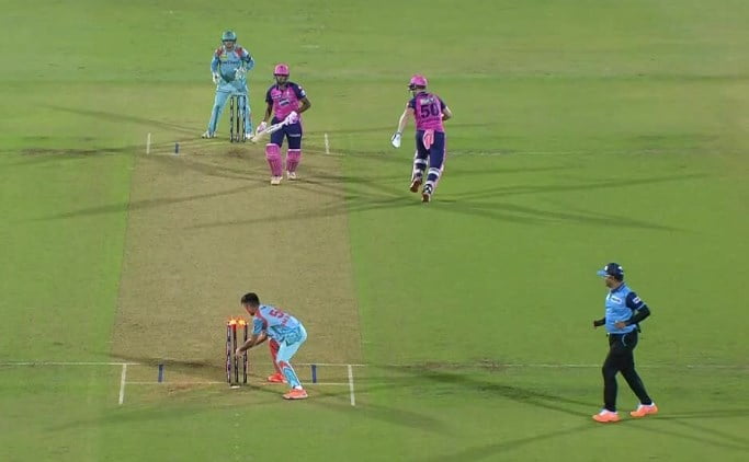 The 63rd match of the Indian Premier League (IPL) 2022 is being played between the new entrants Lucknow Super Giants (LSG) and Rajasthan Royals (RR) on 15th May at the Brabourne Stadium in Mumbai. Towards the end of the first innings, the fans witnessed an incident when R Ashwin was involved in a strange run-out with Jimmy Neesham.