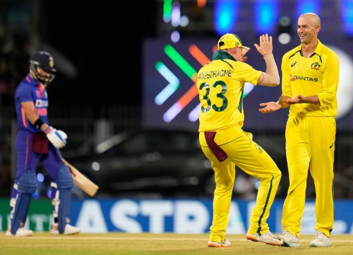 Steve Smith noticed that the Chennai pitch, at times, was stopping a bit. In the 34th over of India’s chase, Agar did exactly that and nearly dismissed both Kohli and Hardik off successive balls. On both occasions, the right-handers attempted an inside out shot against the left-arm spinner but the stop-and-start nature of the pitch did not allow them to hit through the line. The ball dropped just short off the long-off fielder twice.