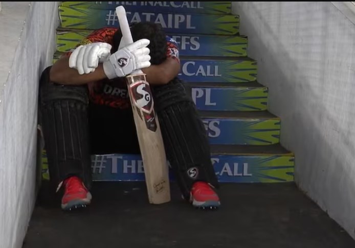 Rahul Tripathi departed after scoring a commendable 55 runs off 35 balls against his former team. After the dismissal, a heartbroken Tripathi was seen sitting near the stairs with his head down on his knees, seemingly crying over the unfortunate turn of events. His emotional reaction highlighted the impact of his dismissal on SRH’s chances in the crucial match.