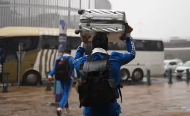 A video shared by BCCI captured scenes of Suryakumar Yadav, Yashasvi Jaiswal, Rinku Singh, and others shielding themselves with luggage as rain lashed down. The tour kicks off on December 10 with a three-match T20I series, followed by three ODIs starting on December 17.