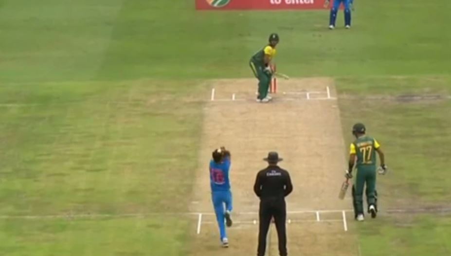 On the ultimate delivery of the fifth over, Duminy skied a Bhuvneshwar Kumar delivery. Raina, who was fielding at mid-wicket, ran backwards to take the catch near the boundary. Duminy ended up scoring 3 (7).