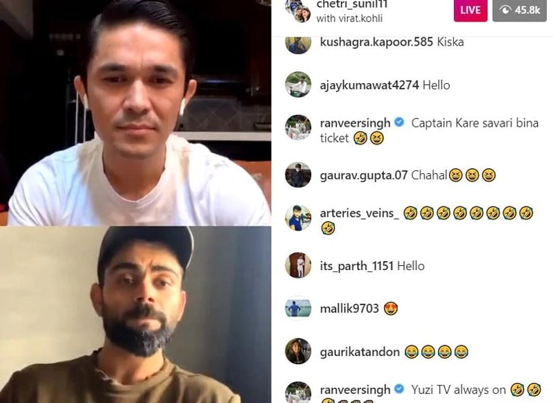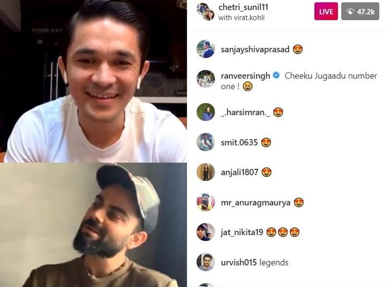 The Indian skippers, Virat Kohli, and Sunil Chhetri of cricket and football teams respectively are two of the most loved sportspersons in the country. So it is no surprise that when the two, who are known to be good friends, went live on Instagram for a chat, it generated a lot of buzz and excitement among fans of both sports. It was, however, Bollywood actor Ranveer Singh who appeared to be the most exciting fan and stole a lot of limelight during the Instagram live with a deluge of hilarious comments.
