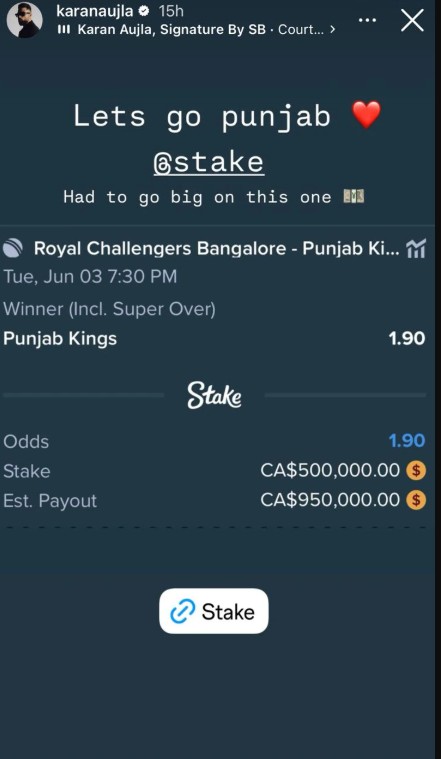 Interestingly, Drake isn’t the only music star emotionally (and financially) invested in the IPL 2025 final. Punjabi rap star Karan Aujla, in support of his home team, Punjab Kings, has placed a bet of ₹3.1 crore. If Shreyas Iyer’s side goes all the way, Aujla is expected to earn close to ₹5.92 crore. This celebrity face-off has added an extra layer of intrigue to what was already a highly anticipated final.