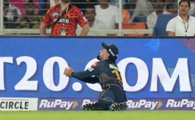 That’s when Rashid sprang into action. Charging in from deep square, he covered serious ground and timed a perfect slide on his knees to pluck the ball out of the air with both hands. The catch left the crowd stunned and his teammates elated, with skipper Shubman Gill and others rushing to celebrate the game-changing moment.