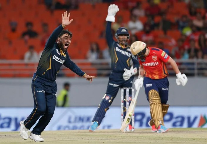 In a crucial clash between Gujarat Titans (GT) and Punjab Kings (PBKS) in IPL 2024, spinner Rashid Khan delivered a decisive blow by dismissing Sam Curran, albeit with some drama. Initially, the on-field umpire denied the appeal as the ball struck Curran’s pads, but Shubman Gill’s astute review revealed that it would have hit the stumps, securing the wicket for GT.