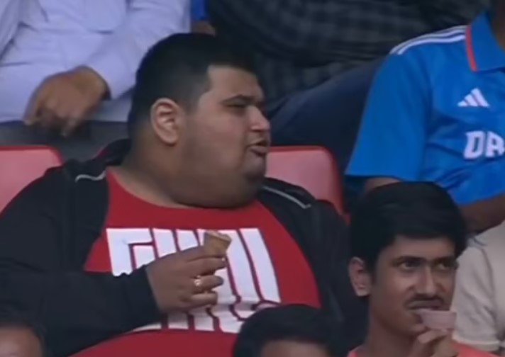 During the 7th over of India’s second innings, the commentators, Sunil Gavaskar and Ravi Shastri, were drawn to a spectator enjoying an ice cream. The fan’s amusing attempts to hide the treat caught the attention of viewers and commentators alike.