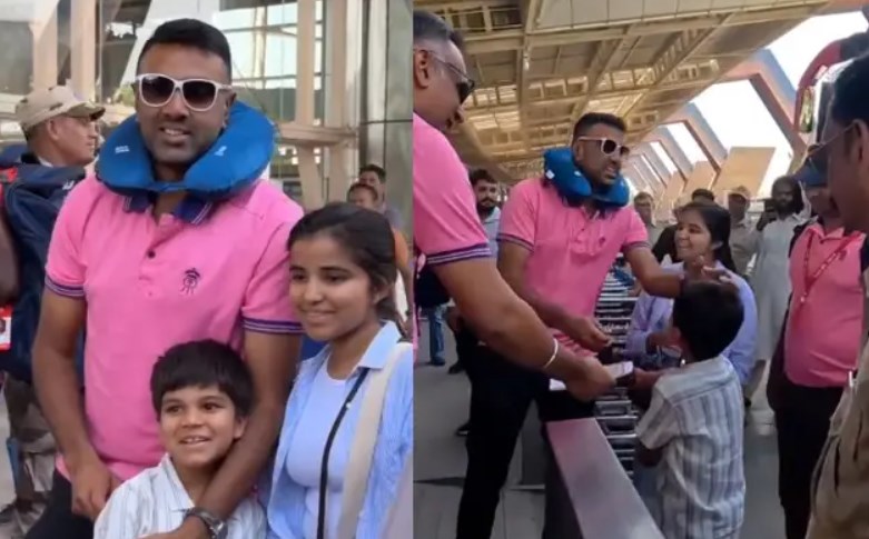 Ravichandran Ashwin, the esteemed Indian cricketer, endeared himself to fans with a heartwarming gesture at the airport as the Rajasthan Royals embarked on their journey to Mumbai for their upcoming Indian Premier League (IPL) encounter. During the team’s travel from Jaipur to Mumbai on March 30, Ashwin, accompanied by the Royals, encountered two young fans at the airport who eagerly sought his autograph and a photograph.