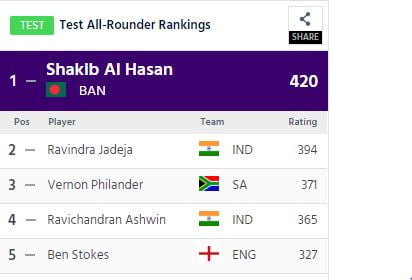 All-rounders Rankings (source: ICC)