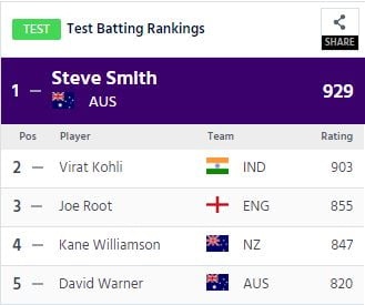 Batsmen Rankings (source: ICC)