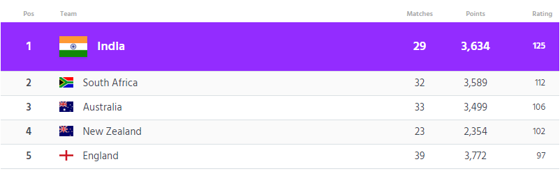 The latest ICC rankings have also considered the historic Test match between India and Afghanistan in the latest rankings update. The hosts managed to win the match easily by an innings and 262 runs and are still at the numero uno position leading second-placed South Africa by 13 points. The spinner Ravindra Jadeja who picked 6 wickets in the game has inched up one place and is settled at the third position in the bowlers’ rankings.