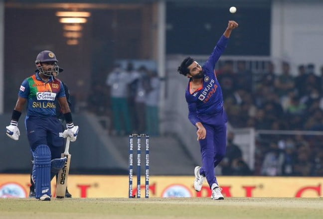The veteran Indian all-rounder, Ravindra Jadeja did the infamous beard celebration from the popular movie “Pushpa” after dismissing Dinesh Chandimal in the ongoing opening T20I of the three-match series at the Ekana Stadium in Lucknow. Earlier in the game, the Sri Lankan skipper, Dsun Shankar had won the toss and decided to bowl first.