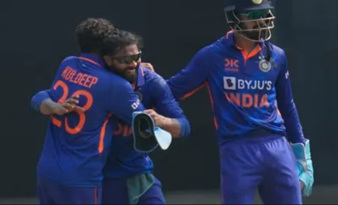 Jadeja had very little time to judge the trajectory of the ball and time his dive but he got it right and pulled off a stunner. The all-rounder was evidently elated with his effort as he rose up from the ground, raised his hand and celebrated the wicket. His India teammates rushed toward him and embraced the all-rounder for the stunning catch.