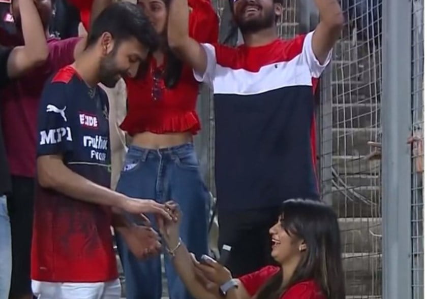During the match between RCB and CSK, a couple found their love as the fan girl proposed to her boyfriend, who appeared to have said ‘yes’ after which they were spotted hugging each other during the proposal.