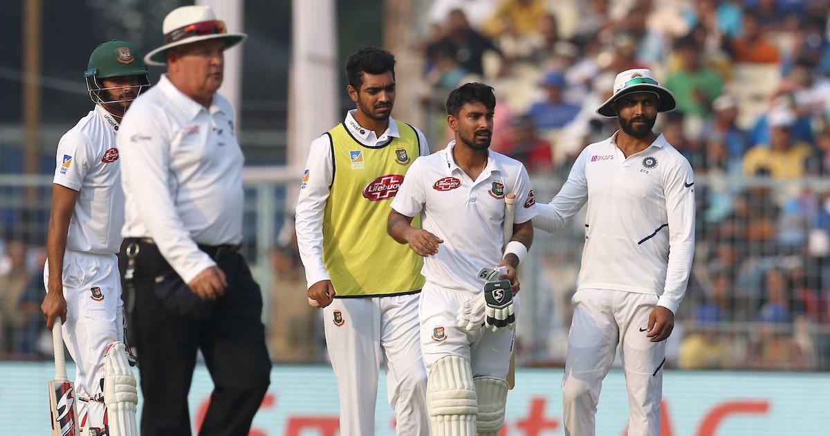 Bowler Mehidy Hasan was the substitute for Das, the wicket-keeper while fellow spinner Taijul Islam was in for Hasan. However, Taijul bowled eight overs when India batted conceding 23 runs, Hasan was not allowed to ball in the Test.