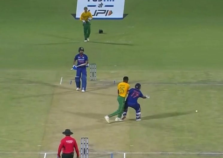 Kagiso Rabada was bowling the 14th over of the innings with Shreyas Iyer at the striker’s end and Rishabh Pant was on the other end. Shreyas played it towards short mid-wicket and Pant tried to sneak a single. However, Shreyas denied the single, and Pant then collided with Rabada. He was short of the crease and the fielder had an opportunity to run him out. Surprisingly, the fielder missed the easy run-out chance and the Indian wicketkeeper-batter survived.