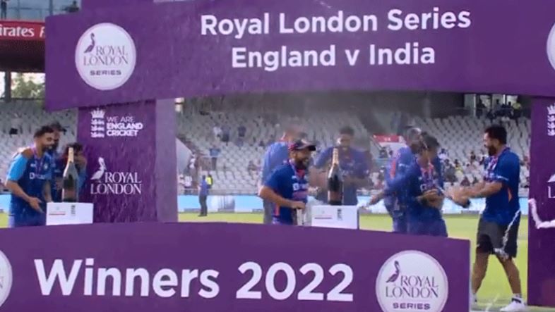 The young Indian wicket-keeper batter, Rishabh Pant led the way during the post-series celebrations as he wildly sprayed champagne bottles while skipper, Rohit Sharma kept on insisting on clicking the pictures. Pant played a match-winning knock of 125 off just 119 balls in the third and final ODI to help India gun down the target of 260 with 47 balls to spare.