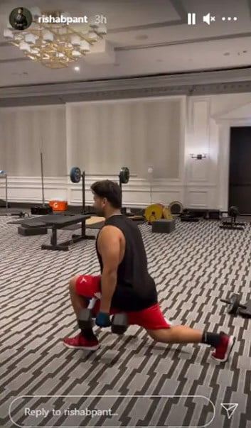 The attacking batsman also shared a couple of videos on his Instagram story doing some leg exercise using dumbbells.