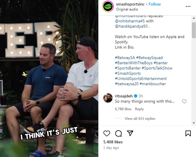“So many things wrong with this,” responded Rohit’s wife Ritika to Boucher’s interview.