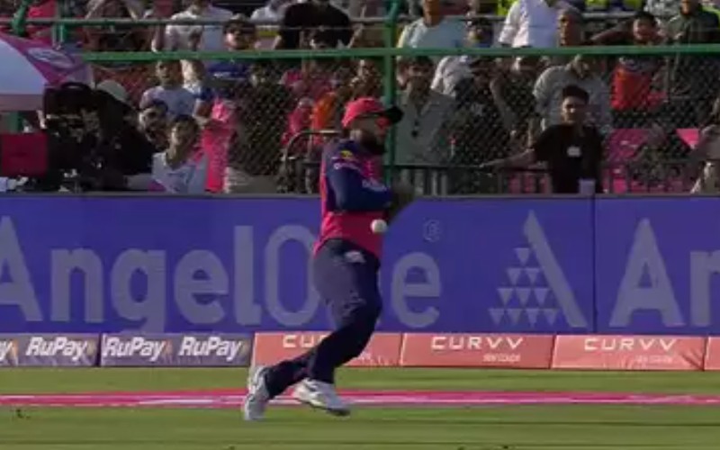 The timing was off, and the ball ballooned high toward long-on, offering a simple chance to Parag. Positioned well under the descending ball, Parag had both time and visibility, yet somehow misjudged it. With his sunglasses on and no external distraction in sight, he let the catch slip right through his hands, stunning the crowd and his teammates alike.