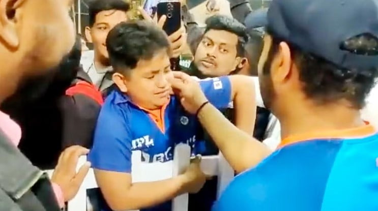 “Rone ka kya baat hai, chota bachcha hai tu. Itne mote mote gaal hai tere (Why are you crying, you are just a little boy. You have such fat cheeks),” Rohit Sharma can be heard saying to the young fan present outside the stadium. India’s captain then proceeded to click a selfie with the fan before leaving.